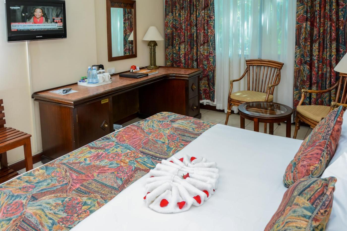The units at the hotel are equipped with a seating area. The rooms are fitted with a private bathroom with a bath, while certain rooms will provide you with garden views.units at Jacaranda Hotel Nairobi come with a flat-screen TV with satellite channels and a safety deposit box.